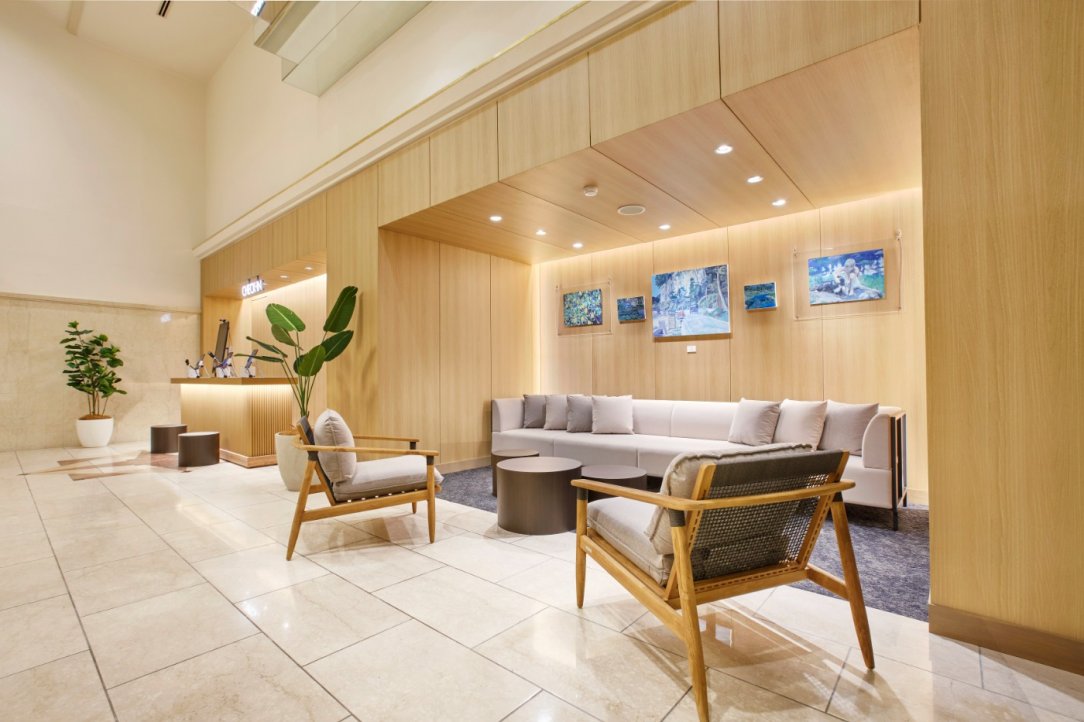 2018年、1階エントランスに隣接する朝食会場をカジュアルな雰囲気に改装を行った為、エントランスにおいて新旧デザインのミスマッチが否めなかった。今回省人化に伴いアバターが案内するホテルに再リニューアルするのをきっかけに、1階エントランスホールのデザイン統一化を図った。