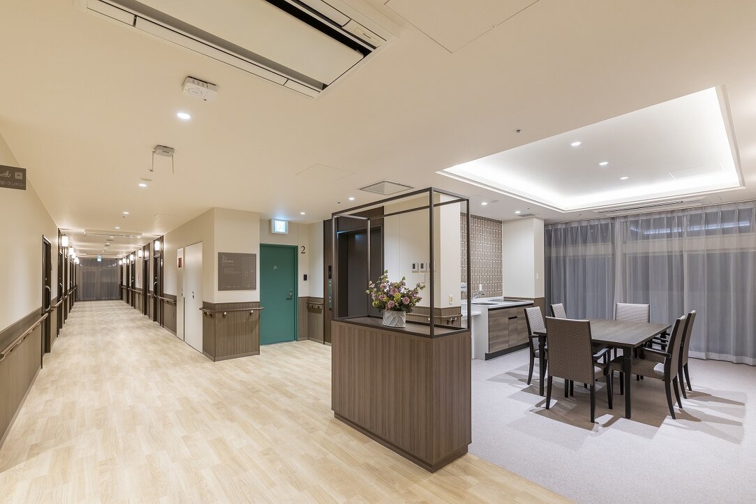阪急「岡本」駅徒歩圏内の閑静な住宅街に位置する新築老人ホームをデザイン監修した案件。